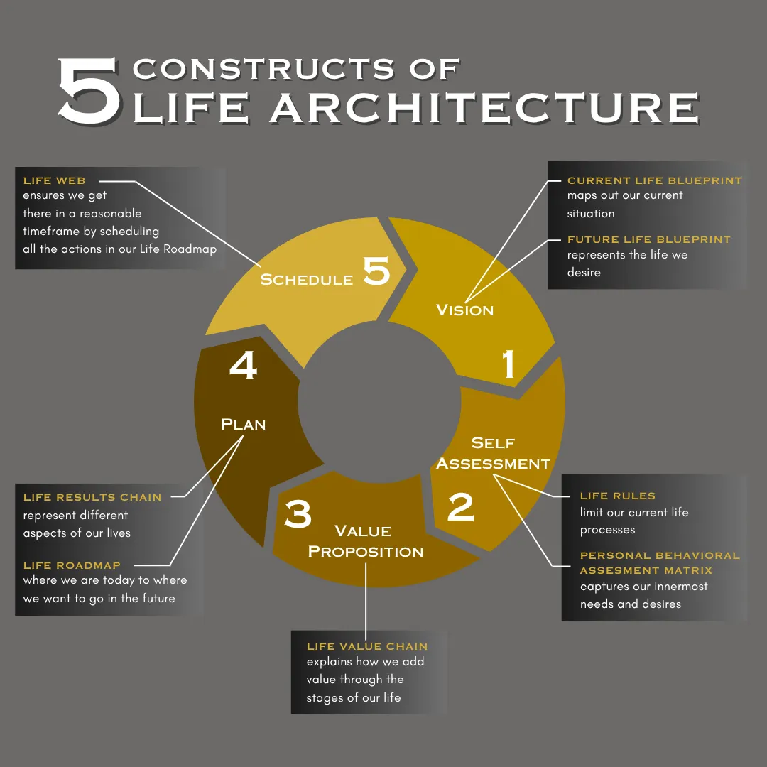 Think of it as a personal journey that prioritizes your life and takes you from a mundane, uninspiring lifestyle to one where you dream to be. Life Architecture maybe your chance to make your dreams come true.